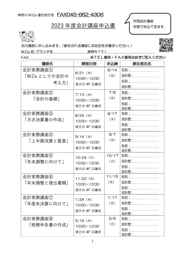 | 申込先 | W.Co連合会 FAX:045-662-4306 申込フォームこちらから: |